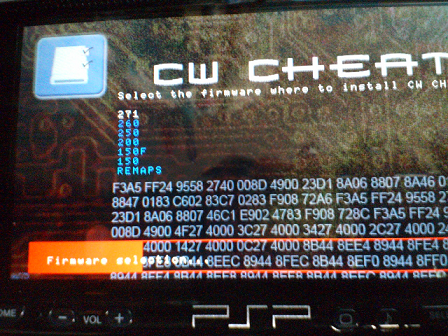 devhookが入っているPSPでCWCheatのもとを実行して、インストールしたいバージョンを選択するだけです。